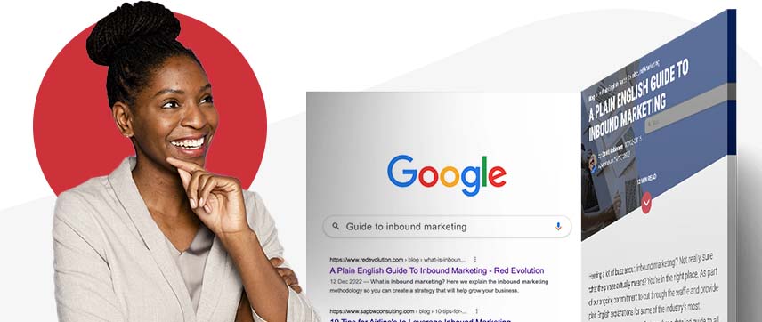One way to quickly understand the power of blogging is to consider a perfect world blog post outcome. Let's say you establish that your ideal customers have a specific business challenge, and when they're looking for a solution, they type a very specific search term into Google.